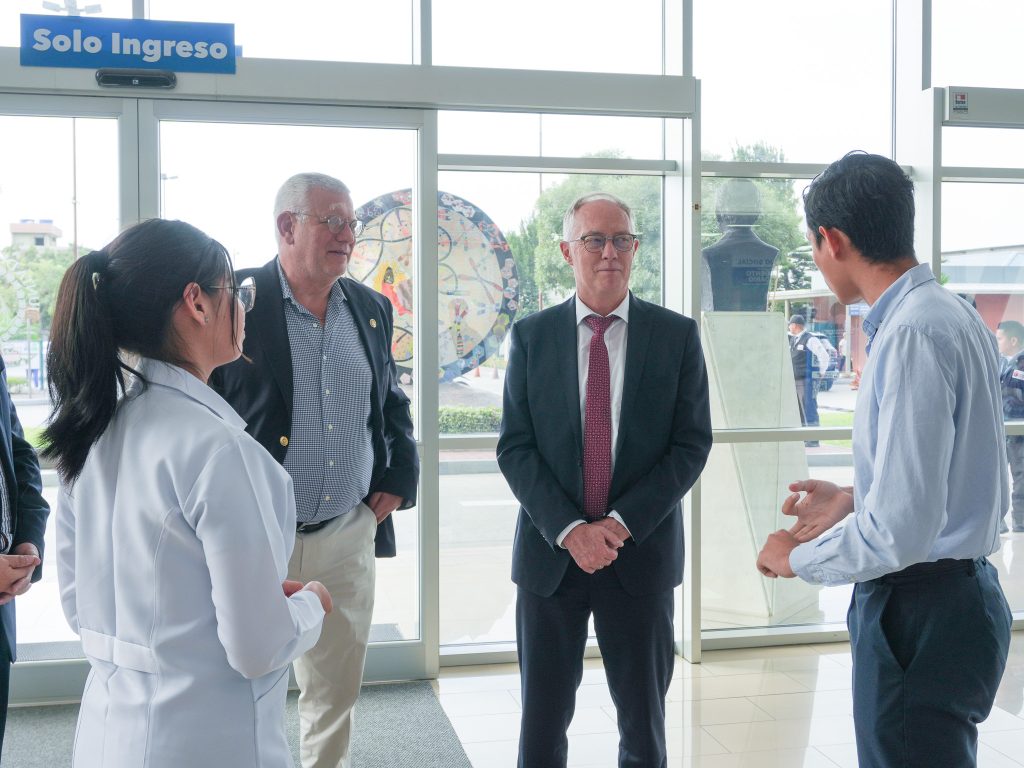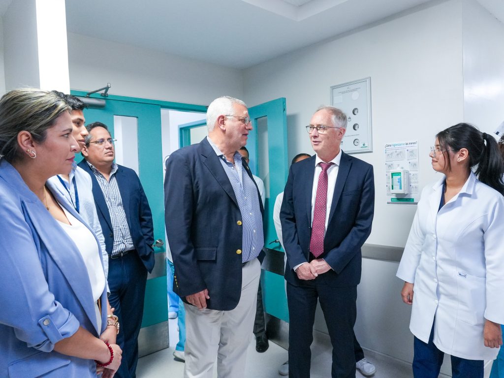 Durante su recorrido por diversas áreas del hospital, el embajador, acompañado por el equipo de JBG Educación, fue testigo del trabajo y la preparación que reciben los aprendices del programa de Auxiliar de Enfermería. Este modelo educativo, basado en la combinación de formación teórica y práctica en entornos reales de trabajo, ha sido una herramienta clave para capacitar a jóvenes con altos estándares de calidad y empleabilidad.
